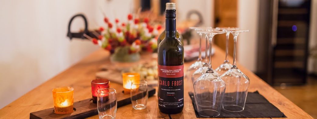 Der Muskateller verleiht diesem Wein eine blumige Aromatik, den Duft frischer Trauben und einen süßeren Geschmack. Es handelt sich um einen halbtrockenen Wein, der in Carlo-Frost-Flaschen angeboten wird.